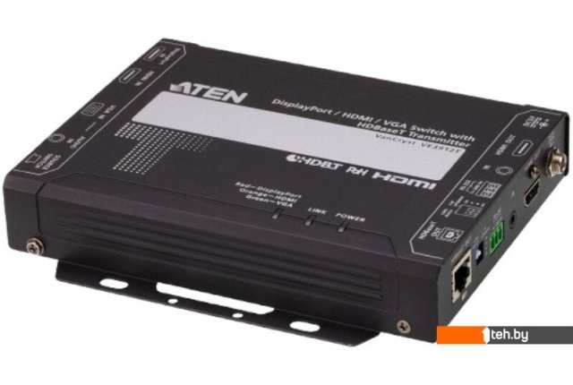 | Информация | HDBaseT-передатчик видеоудлинителя VE3912T компании ATEN, это устройство для передачи по одному кабелю Cat 6/6a или кабелю ATEN 2L-2910 Cat 6 видеосигналов 4K DisplayPort, HDMI или VGA на расстояние до 100 метров. Обладая поддержкой множества форматов входного изображения и разрешением на выходе до 4K, он способен обеспечить превосходное качество изображения в применениях, требующих расширения расстояния передачи, а также преобразования сигнала от цифровых или аналоговых источников. Являясь совместимым с HDCP 2.2, передатчик VE3912T соответствует спецификации HDMI, включая такие функции как 3D, Deep Color и качество изображения 4Kx2K. Также поддерживается режим автоматического переключения, в котором переключение на вновь подключенный источник происходит автоматически. Благодаря встроенной функции PoH (Power over HDBaseT, подача питания через HDBaseT), передатчик VE3912T может получать питание от выходного порта HDBaseT подсоединенного устройства, что устраняет необходимость в адаптере питания. HDBaseT-передатчик VE3912T рекомендуется использовать в качестве комбинации для расширения расстояния передачи и переключателя видеосигналов для цифровых и аналоговых источников в условиях, требующих работу с несколькими исходными устройствами, таких как конференц-залы, образовательная среда с применением цифровых технологий или там, где требуется интеграция и унификация обработки видеосигнала. Расширяет расстояние передачи сигналов DisplayPort, HDMI или VGA с помощью одного кабеля Cat 6/6a или кабеля ATEN 2L-2910 Cat 6 Поддержка ввода сигнала от нескольких источников (DisplayPort/HDMI/VGA) - простое переключение между источниками с помощью кнопки Поддержка функции Auto Switch – автоматически переключается на новый подключенный источник сигнала Поддержка функций HDMI (3D, Deep Color, 4K); совместимость с HDCP 2.2 Превосходное качество изображения: • HDMI/Displayport: разрешения 4K по кабелю Cat 6a или ATEN 2L-2910 Cat 6 на расстояние до 100 метров • VGA: 1600 x 1200 и 1920 x 1200 по кабелю Cat 6a или ATEN 2L-2910 Cat 6 на расстояние до 100 метров Поддержка режим работы HDBaseT Long Reach – до 150 метров по одному кабелю Cat 5e/6 с разрешением до 1080p Поддержка зеркального видеовывода – обеспечивает разрешение 4K при 30 Гц, 4:4:4 на HDBaseT-выходе и локальном HDMI-выходе Встроенная функция PoH (Power over HDBaseT, подача питания через HDBaseT) - передатчик VE3912T может получать питание от выходного порта HDBaseT подсоединенного устройства Идеальная совместимость с HDBaseT – совместимость с приемниками компании ATEN с HDBaseT, позволяющая передавать кристально-чистое изображение и звуковые сигналы на выходные порты |