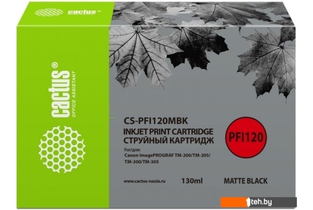 Фотографии, описание и технические характеристики модели картриджа CACTUS CS-PFI120MBK (аналог Canon PFI-120MBK) взяты из открытых источников, официального сайта производителя или представительства CACTUS в Республике Беларусь.