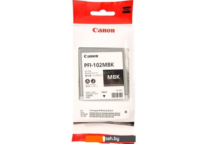 Если хотите купить картридж для принтера Canon PFI-102MBK (0894B001AA) то следует уточнить все параметры и габариты модели перед покупкой. Представленые характеристики на сайте 1teh.by могут отличаться от действительных или указанных производителем. Описание, фото товара и технические характеристики представлены для справки.