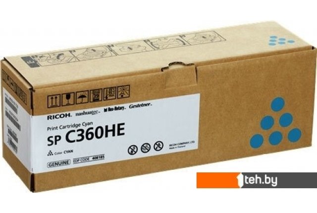 Фотографии, описание и технические характеристики модели картриджа Ricoh SP C360HE 408185 (циан) взяты из открытых источников, официального сайта производителя или представительства Ricoh в Республике Беларусь.