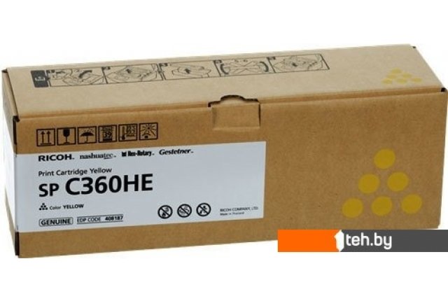 Фотографии, описание и технические характеристики модели картриджа Ricoh SP C360HE 408187 (желтый) взяты из открытых источников, официального сайта производителя или представительства Ricoh в Республике Беларусь.