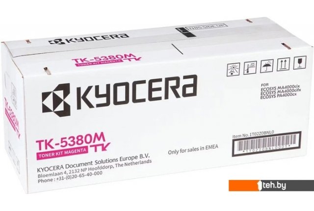 Фотографии, описание и технические характеристики модели картриджа Kyocera TK-5380M взяты из открытых источников, официального сайта производителя или представительства Kyocera в Республике Беларусь.