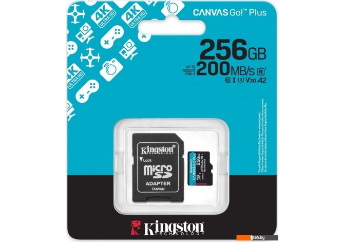 Фотографии, описание и технические характеристики модели карты памяти Kingston Canvas Go! microSDXC 256GB SDCG4/256GB (с адаптером) взяты из открытых источников, официального сайта производителя или представительства Kingston в Республике Беларусь.
