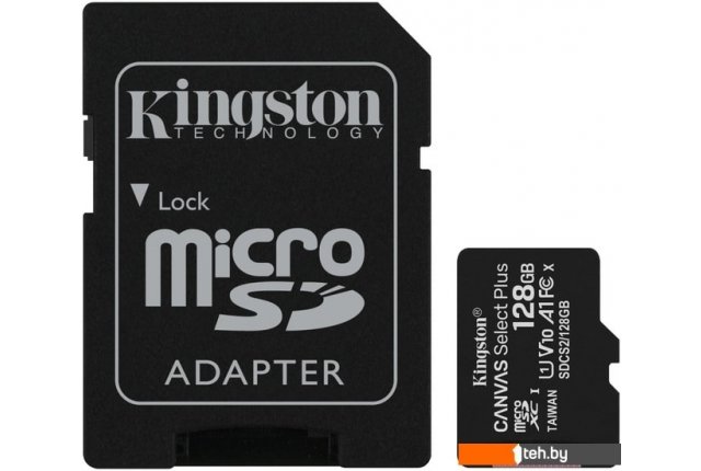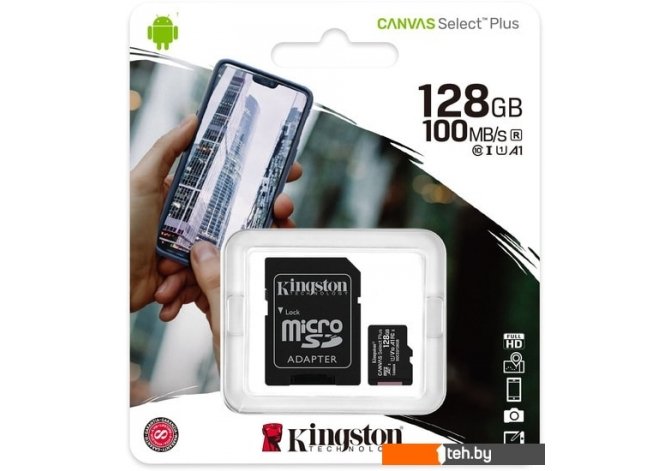 Фотографии, описание и технические характеристики модели карты памяти Kingston Canvas Select Plus microSDXC 128GB (с адаптером) взяты из открытых источников, официального сайта производителя или представительства Kingston в Республике Беларусь.