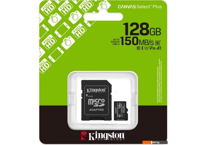 Фотографии, описание и технические характеристики модели карты памяти Kingston Canvas Select Plus microSDXC 128GB SDCS3/128GB (с адаптером) взяты из открытых источников, официального сайта производителя или представительства Kingston в Республике Беларусь.