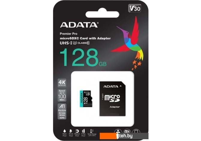Фотографии, описание и технические характеристики модели карты памяти ADATA Premier Pro AUSDX128GUI3V30SA2-RA1 microSDXC 128GB (с адаптером) взяты из открытых источников, официального сайта производителя или представительства ADATA в Республике Беларусь.
