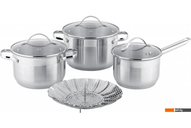 | Состав набора | крышка (3 шт.), кастрюля (2 шт.), ковш, вставка (вставка-пароварка) |
