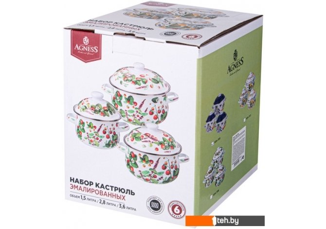 | Информация | ? Набор кастрюль Agness 934-705 - отличный выбор для Вашей кухни! Многие профессиональные повара и домохозяйки выбирают эмалированную посуду. И это не удивительно. Эмалированная посуда обладает целым рядом преимуществ: ? Не требует особого ухода и легко моется. ? Гигиенична — не удерживает болезнетворных микробов и бактерий. ? Не остается запаха пищи на поверхности. ? Можно использовать для хранения приготовленных блюд. ? Подходит для всех типов плит, включая индукционные. ? Можно мыть в посудомоечной машине. ? Толщина стенок 0.5 мм. ? Проходит 3 этапа обжига для сохранения яркости расцветок деколи и прочности. ? Декор наносится вручную и обжигается при температуре около 800 °С. ? Стильный и нежный декор украсит любую кухню. ?? Размеры кастрюль: ? Кастрюля 1.5 л: высота 10 см, диаметр 16 см, диаметр дна 12 см и ширина с ручками 21 см. ? Кастрюля 2.8 л: высота 12 см, диаметр 20 см, диаметр дна 13 см и ширина с ручками 25 см. ? Кастрюля 3.6 л: высота 13 см, диаметр 22 см, диаметр дна 14 см и ширина с ручками 28 см. |