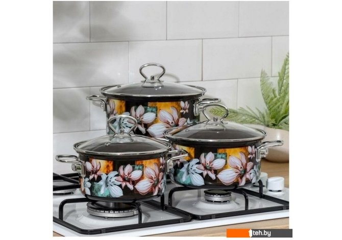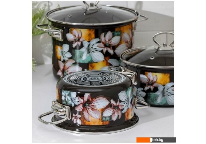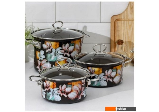 | Состав набора | кастрюля (3 шт), крышка (3 шт) |