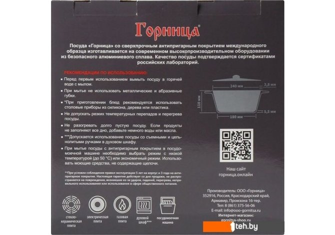 Фотографии, описание и технические характеристики модели Кастрюли Горница Гранит Induction Ик2433аг взяты из открытых источников, официального сайта производителя или представительства Горница в Республике Беларусь.