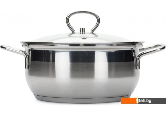 | Информация | - Посуда изготовлена из высококачественной нержавеющей стали, обладающей высокими антикоррозионными характеристиками. - Пятислойное капсульное дно обеспечивает быстрый и равномерный нагрев посуды, позволяет избежать «точек перегрева», что препятствует подгоранию пищи в процессе приготовления. - Крышка изготовлена из жаропрочного стекла, которое отличается повышенной устойчивостью к перепаду температур. - Посуда подходит для любых типов плит, включая индукционные, и для использования в духовом шкафу. |