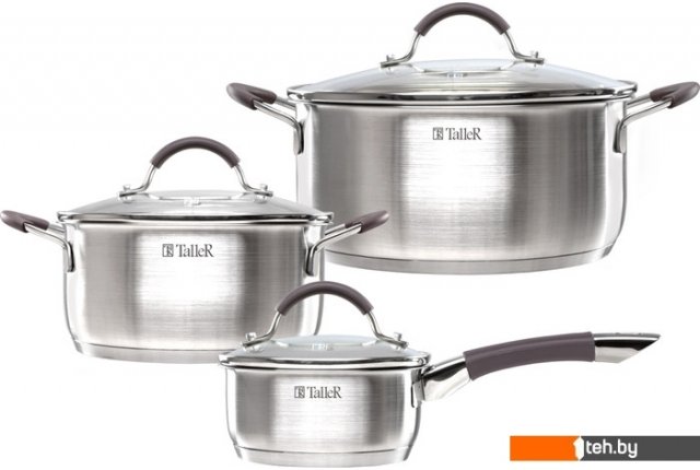 | Информация | ? Набор кастрюль TalleR TR-11025 изготовлен из высококачественной нержавеющей стали марки 18/10. ? Капсулированное дно обеспечивает равномерное распределение тепла. ? Полировка матовая как внутри, так и снаружи. ? Крышки из жаропрочного стекла с отверстием для выхода пара. ? Ручки из нержавеющей стали с коричневыми силиконовыми вставками на точечной сварке. ?? Есть отметки литража. ? Подходит для всех типов плит, включая индукционные. ? Можно мыть в посудомоечной машине. ?? Нельзя использовать в духовом шкафу. |