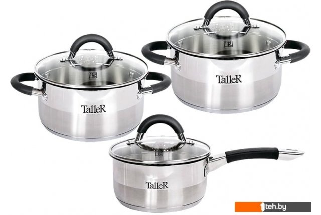 | Состав набора | Ковш с крышкой ? 16 см (1.5 л), TR-7191 Кастрюля с крышкой ? 20 см (3.1 л), TR-7193 Кастрюля с крышкой ? 24 см (5.0 л), TR-7195 |