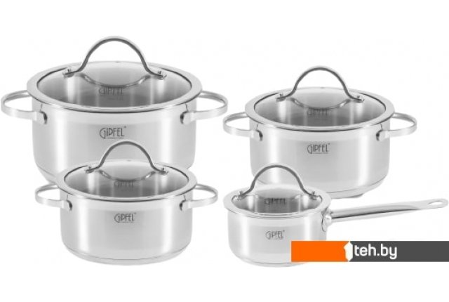 | Состав набора | ковш 14x7 см, кастрюля 16x7 см, кастрюля 20x9.5 см, кастрюля 24x11.5 см |