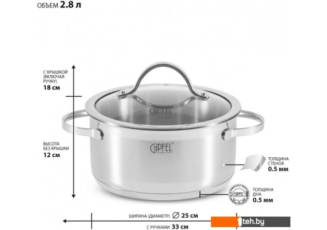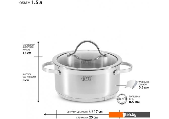 Фотографии, описание и технические характеристики модели Кастрюли Gipfel Victory 1551 взяты из открытых источников, официального сайта производителя или представительства Gipfel в Республике Беларусь.