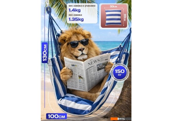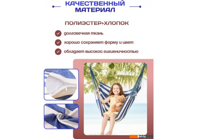 | Информация | -Ключевые характеристики Одноместный гамак-качели выполнен из прочного тканого текстиля (холста) с геометрическим рисунком в синих полосках и белом цвете. Максимальная нагрузка составляет 120 кг, что позволяет комфортно использовать его взрослым и подросткам. Размеры изделия 120 на 100 см обеспечивают удобное размещение и расслабление. -Преимущества и отличия Изделие отличается простотой конструкции без регулировок, что гарантирует надежность и долговечность. В комплект входит подушка для дополнительного комфорта, а тканое полотно обеспечивает хорошую вентиляцию и приятные тактильные ощущения. Форма поставки в разобранном виде облегчает транспортировку и хранение. -Практичность Гамак-качели легко монтируется и подходит для использования как в помещении, так и на улице. Отсутствие сложных механизмов снижает риск поломок и упрощает уход за изделием. Тканевое полотно легко чистится и быстро сохнет, что важно для уличного применения. -Уникальность Модель выделяется сочетанием классического дизайна с современным геометрическим узором и качественным текстильным материалом. В комплекте предусмотрена подушка, повышающая уровень комфорта, что делает использование гамака особенно приятным и расслабляющим. Читать дальше |