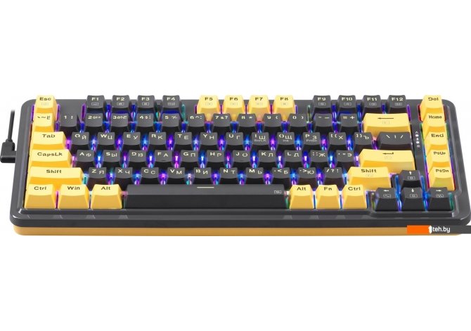 | Информация | - RGB подсветка - Технология Hot Swap - Компактный размер - Аппаратная блокировка клавиши WIN во время игры - Регулируемая яркость подсветки - Gasket mount - Небольшие демпферы внутри клавиатуры, которые помещаются между корпусом и плейтом, обеспечивая лучшую звукоизоляцию и гибкость при нажатии, делая клавиатуру немного тише. - Технология Double injection - Редактор макросов - Программируемая RGB подсветка - Позолоченный USB-коннектор - Повышенная износостойкость - Отсоединяемый кабель - Шумоизоляционный слой в корпусе - Тихий ход клавиш обеспечивает практически бесшумную работу |