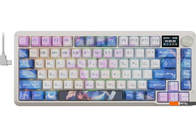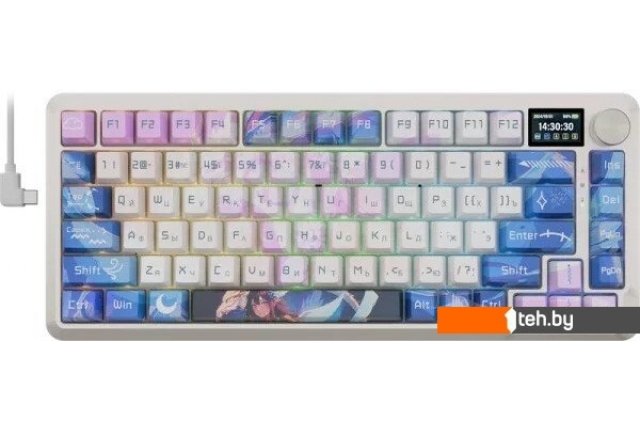 | Информация | LCD-дисплей, три режима подключения (2.4G, BT, провод), gasket-mount, RGB-подсветка и шумоизоляция — за основой идеального тайпинга. А сверху — особенный аниме-дизайн, который превращает клавиатуру в настоящий арт-объект. |