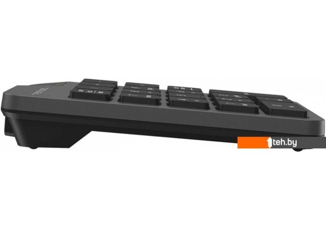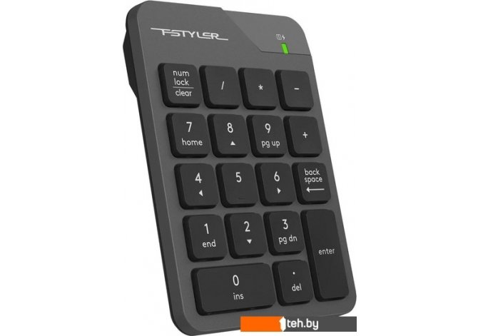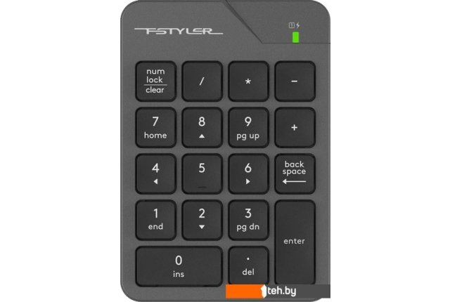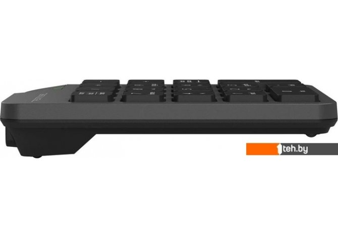 | Информация | Беспроводной цифровой блок FGK21C из серии офисной периферии Fstyler. Компактная модель рассчитана на работу с крупными числовыми данными. На FGK21C размещается 18 низкопрофильных клавиш с лазерной гравировкой, которая обеспечивает стойкость и долговечность символов. Ультратонкая форма кейкапов позволяет быстро набирать текст. Числовой блок дополняет ноутбуки и персональные компьютеры, в которых отсутствует Numpad, и упрощает работу с таблицами. Модель поддерживает беспроводное соединение 2.4 ГГц, радиус действия составляет до 15 метров. Для подключения используется USB nano-ресивер. Также в комплект входит Type-C адаптер, что расширяет возможности для подключения. Встроенный аккумулятор подзаряжается при помощи кабеля Type-C. Блок поддерживает два режима работы: синхронный и асинхронный. Для включения асинхронного режима требуется удерживать клавишу NumLock три секунды. |