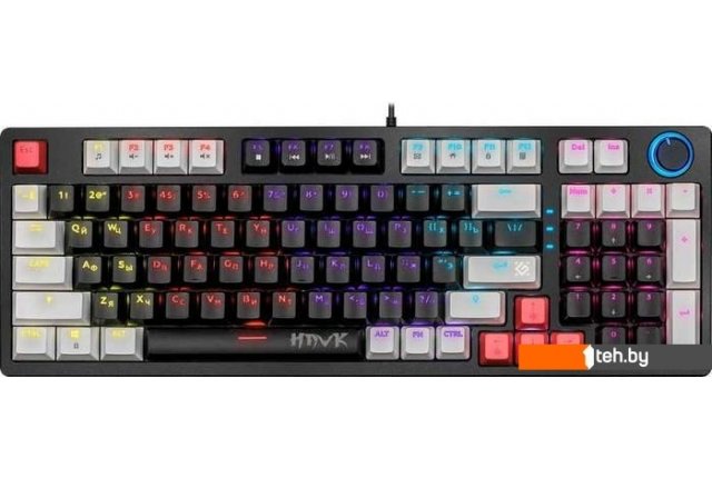 | Информация | Стильная механическая клавиатура с кейкапами трех цветов и тихими красными свитчами. Главные особенности модели: радужная подсветка, возможность замены свитчей, благодаря технологии Hot Swap, а также наличие кнопки-регулятора для управления громкостью и подсветкой. |