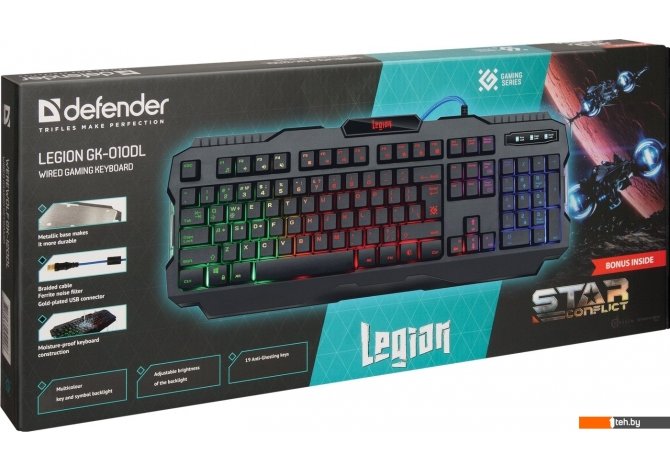 Фотографии, описание и технические характеристики модели клавиатура Defender Legion GK-010DL взяты из открытых источников, официального сайта производителя или представительства Defender в Республике Беларусь.