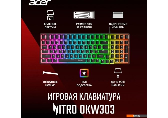 Фотографии, описание и технические характеристики модели клавиатура Acer Nitro OKW303 взяты из открытых источников, официального сайта производителя или представительства Acer в Республике Беларусь.