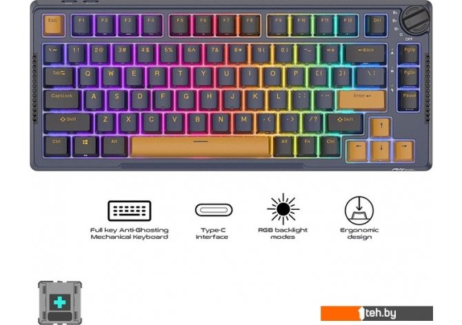 Фотографии, описание и технические характеристики модели клавиатура Royal Kludge RK-H81 RGB Star Night (RK Cyan) взяты из открытых источников, официального сайта производителя или представительства Royal Kludge в Республике Беларусь.