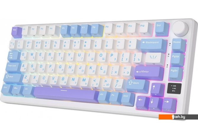| Информация | Механическая игровая клавиатура RK M75 разработана для геймеров, которые требуют высокой производительности и надежности. Эта клавиатура имеет компактный дизайн с 81 клавишей, что позволяет легко брать ее с собой и использовать в любом месте. Клавиши изготовлены из высококачественных механических переключателей, которые обеспечивают тактильную обратную связь и приятный звук щелчка при нажатии, что идеально подходит для игр или печати. Эта игровая клавиатура также имеет настраиваемую RGB-подсветку с несколькими режимами освещения, позволяя настроить подсветку по своему вкусу. Кроме того, эта беспроводная клавиатура имеет прочную конструкцию и 2-в-1 USB-кабель Type-C для удобной переноски. Механическая клавиатура RK M75 имеет три метода подключения: проводное, Bluetooth и 2,4 ГГц. Она легко переключается между 3 различными беспроводными устройствами и больше не ограничивает возможность подключения.Все клавиши программные |