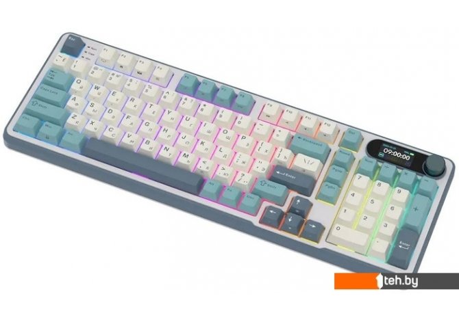 | Информация | Механическая клавиатура Royal Kludge RK-S98 - 3 типа подключения (Bluetooth, радиоканал 2.4 ГГц, провод), 98 клавиш, LCD экран, цвет Light Cloud, переключатели RK Chartreuse, Top Mount, профиль PBT Cherry, EN/RU - двойное литье (Double Shot), горячая замена переключателей 3/5 pin, настраиваемая RGB подсветка, USB-порт, слой звукопоглощающего силикона, аккумулятор 3750 mAh, многофункциональный вращающийся переключатель режимов и громкости. |