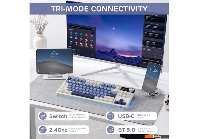 | Информация | ??Текст описания переведен при помощи искусственного интеллекта. - Компактный TKL-дизайн с комфортом гаскетного монтажа Клавиатура RK S85 сочетает в себе 85 клавиш в формате tenkeyless (TKL) и премиальную конструкцию с гаскетным монтажом, что обеспечивает экономию пространства и высокий комфорт при наборе текста. Компактный дизайн освобождает место на столе, позволяя свободно двигать мышью, при этом сохраняя важные функциональные и мультимедийные клавиши для работы и игр. Гаскетная структура с силиконовой амортизацией, IXPE пеной и PET пленкой снижает уровень шума и смягчает нажатия клавиш, обеспечивая тихий и плавный набор текста. - Тройной режим подключения для универсальности Модель S85 поддерживает три режима подключения: беспроводной 2.4GHz, Bluetooth и проводной USB-C, что гарантирует совместимость с различными устройствами. Легкий переход между устройствами осуществляется с помощью сочетаний клавиш Fn, что делает S85 идеальным выбором для многозадачности. Клавиатура полностью совместима как с Windows, так и с Mac, предоставляя полную гибкость для любой конфигурации. - OLED-дисплей для мониторинга в реальном времени Встроенный OLED-экран отображает актуальную информацию, такую как уровень заряда батареи, режим подключения (проводной/2.4G/Bluetooth) и системный режим (Win/Mac). Этот дисплей позволяет легко следить за состоянием и быстро вносить изменения, не прерывая рабочий процесс или игровую сессию. - Долговечная батарея на 7200mAh С батареей на 7200mAh S85 обеспечивает до 41 часа непрерывной работы при максимальной яркости подсветки или до 240 часов на минимальной яркости. В режиме ожидания батарея может работать впечатляющие 10,700 часов, что избавляет от беспокойства о зарядке. Полная зарядка занимает всего 14.5 часов, что минимизирует время простоя между использованием. - Яркая RGB-подсветка с южной ориентацией PCB RK S85 оснащена эффектной RGB-подсветкой, направленной прямо на пользователя, что обеспечивает оптимальное освещение с точки зрения набора текста. Южная ориентация гарантирует, что RGB-огни остаются яркими и видимыми, даже при использовании клавиш Cherry-профиля, без каких-либо помех. - Горячая замена и предварительно смазанные переключатели Cloud для плавного набора RK S85 оборудована предварительно смазанными переключателями Cloud, которые обеспечивают плавные и отзывчивые нажатия клавиш для исключительного опыта набора текста. С силой активации 45±10gf и общим ходом 3.4±0.4mm, эти переключатели предлагают точный контроль и комфортное ощущение. Плата с горячей заменой поддерживает как 3-контактные, так и 5-контактные переключатели, что позволяет легко менять переключатели по своему усмотрению без пайки. Читать дальше |