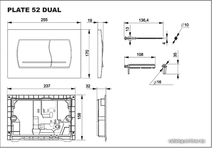 Клавиши и системы смыва Roca Active 52B 8901150B2 (хром матовый)