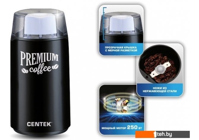 Фотографии, описание и технические характеристики модели кофемолки CENTEK CT-1360 (черный) взяты из открытых источников, официального сайта производителя или представительства CENTEK в Республике Беларусь.