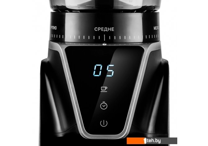 | Информация | Кофемолка отличается высокой производительностью в 165 Вт, и за 1 цикл работы способна измельчить до 100 г продукта! Даёт равномерный помол и не перегревает кофе в отличие от роторных кофемолок. Нескользящие ножки делают прибор устойчивее на поверхности. У кофемолки есть LED-дисплей и сенсорное управление, что делает устройство удобным в использовании. Дисплей показывает время работы, количество чашек до 10 порций и таймер на 40 секунд. Сверху находится регулятор, где можно настроить степень помола. Длина шнура: 0.8 м. |
