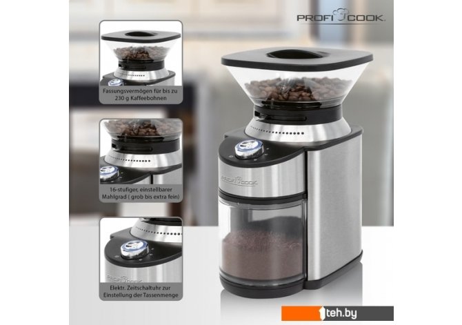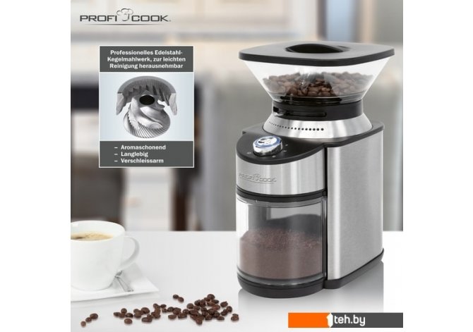 Фотографии, описание и технические характеристики модели кофемолки ProfiCook PC-EKM 1205 взяты из открытых источников, официального сайта производителя или представительства ProfiCook в Республике Беларусь.