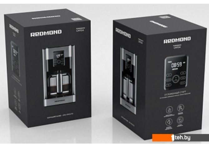 Фотографии, описание и технические характеристики модели кофеварки Redmond CM704 (черный) взяты из открытых источников, официального сайта производителя или представительства Redmond в Республике Беларусь.