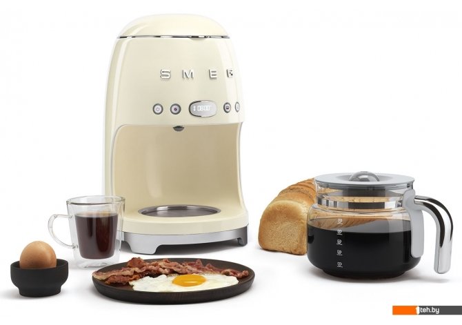 Фотографии, описание и технические характеристики модели кофеварки Smeg DCF02CREU взяты из открытых источников, официального сайта производителя или представительства Smeg в Республике Беларусь.