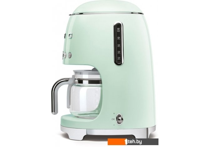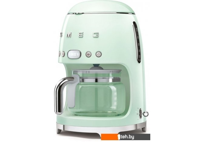 Фотографии, описание и технические характеристики модели кофеварки Smeg DCF02PGEU взяты из открытых источников, официального сайта производителя или представительства Smeg в Республике Беларусь.