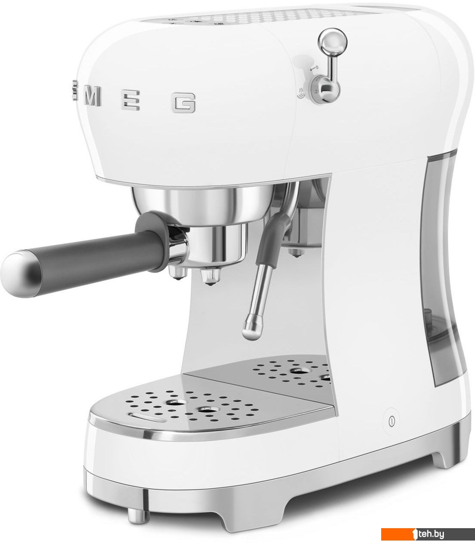 Фотографии, описание и технические характеристики модели кофеварки Smeg ECF02WHEU взяты из открытых источников, официального сайта производителя или представительства Smeg в Республике Беларусь.