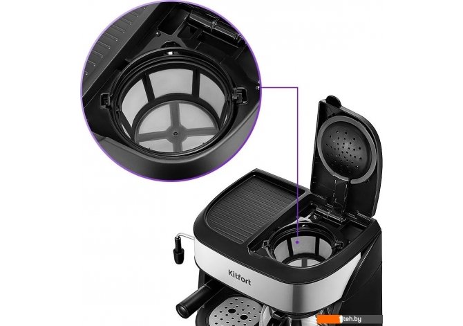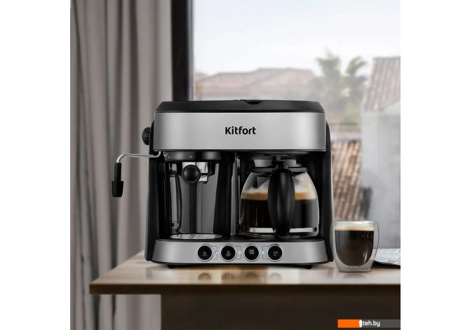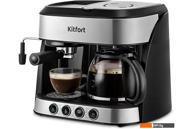 Фотографии, описание и технические характеристики модели кофеварки Kitfort KT-7185 взяты из открытых источников, официального сайта производителя или представительства Kitfort в Республике Беларусь.