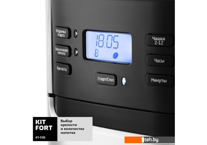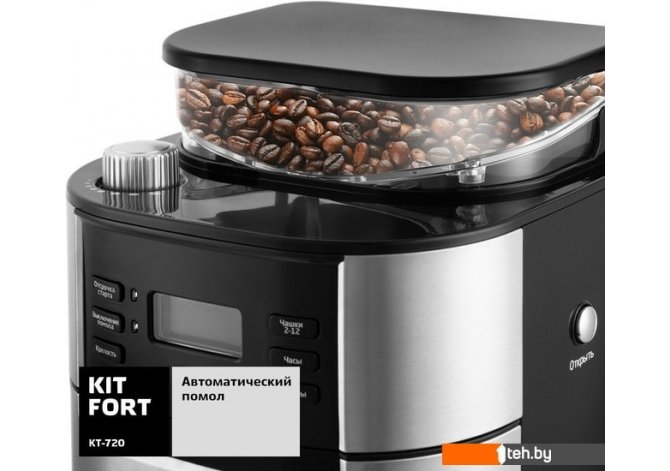 Фотографии, описание и технические характеристики модели кофеварки Kitfort KT-720 взяты из открытых источников, официального сайта производителя или представительства Kitfort в Республике Беларусь.