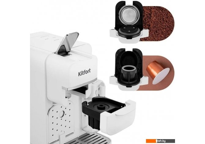 Фотографии, описание и технические характеристики модели кофеварки Kitfort KT-7253 взяты из открытых источников, официального сайта производителя или представительства Kitfort в Республике Беларусь.