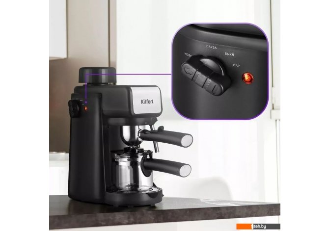 Фотографии, описание и технические характеристики модели кофеварки Kitfort KT-7259 взяты из открытых источников, официального сайта производителя или представительства Kitfort в Республике Беларусь.