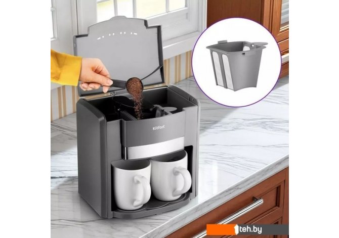 Фотографии, описание и технические характеристики модели кофеварки Kitfort KT-7302 взяты из открытых источников, официального сайта производителя или представительства Kitfort в Республике Беларусь.