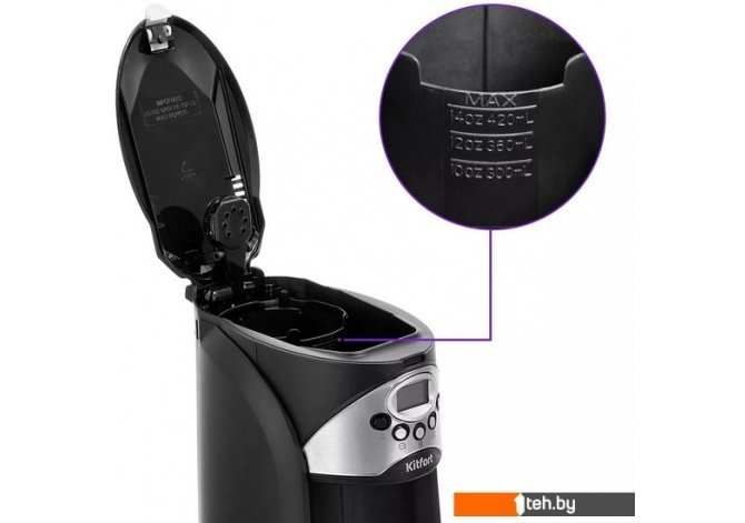 Фотографии, описание и технические характеристики модели кофеварки Kitfort KT-7308 взяты из открытых источников, официального сайта производителя или представительства Kitfort в Республике Беларусь.