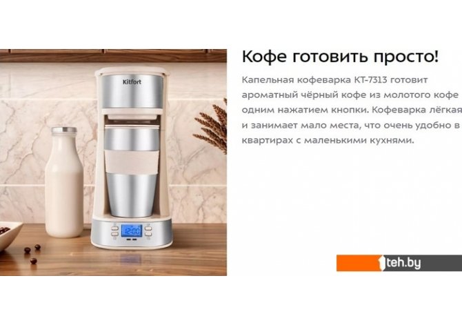 Фотографии, описание и технические характеристики модели кофеварки Kitfort KT-7313 взяты из открытых источников, официального сайта производителя или представительства Kitfort в Республике Беларусь.