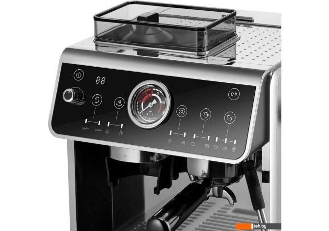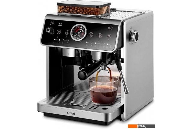 | Информация | Кофеварка, кофемолка и капучинатор! Кофейная станция КТ-7321 сочетает в себе два устройства в одном корпусе. Кофейная станция поможет приготовить кофе эспрессо, американо, капучино или латте, а также множество других видов кофе на ваш вкус. Широкий спектр настроек КТ-7321 позволяет регулировать время и объем помола зёрен, а с помощью кнопки «Кофе» можно выбрать желаемый напиток. Манометр показывает давление в бойлере для точного контроля процесса. Вкус любимого кофе Встроенная кофемолка с коническими металлическими жерновами позволяет измельчать кофейные зерна непосредственно перед приготовлением кофе, что положительно отражается на вкусе готового напитка. Идеальная молочная пенка Для приготовления молочной пенки используйте капучинатор — паровую трубку (стимер). Погрузите стимер в холодное молоко, включите подачу пара и взбейте пенку. В комплекте предусмотрен металлический питчер для удобства взбивания. Почувствуйте себя бариста! Ключевым отличием кофейной станции от всех остальных кофейных устройств является наличие рожка, его часто называют холдер. Молотый кофе помещается в фильтр рожка и прессуется в таблетку. Процесс трамбовки также называют темперовкой. На любой вкус Металлические фильтры с лазерным нанесением отверстий долговечны и не требуют использования каких-либо расходующихся частей. Для приготовления эспрессо возьмите одинарный фильтр, а для двойного эспрессо — двойной фильтр. Ни капли мимо! Поддон для сбора капель легко снимается, моется и устанавливается обратно. Вы с лёгкостью можете поддерживать ваш прибор всегда в чистоте! Удобство во всём На платформе можно хранить темпер или ставить чашки, чтобы они были тёплыми или лучше сохли после мытья. Резервуар для воды съёмный — его можно легко снять и наполнить водой в любом удобном месте. Ёмкость резервуара составляет 2,6 л. Всегда тёплые чашки Платформа с подогревом не имеет своего нагревательного элемента, но нагревается от тепла, выделяемого при работе бойлера. На ней удобно располагать чашки и рожок, чтобы они успели согреться перед приготовлением напитка. Всё для идеальной чистки В комплект входит ёршик, кисточка и щётка. Эти аксессуары помогут тщательно очистить все труднодоступные участки кофейной станции, обеспечивая идеальное обслуживание и долговечность устройства. Простота использования и надёжность гарантированы. |