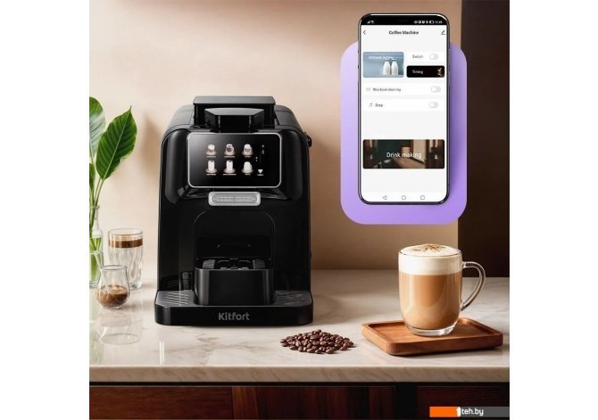 | Информация | - Для истинных любителей кофе! Автоматическая кофемашина КТ-7460 — идеальный выбор для тех, кто ценит время и хочет наслаждаться насыщенным вкусом свежезаваренного кофе. Уникальная технология приготовления сохраняет тонкий аромат вашего напитка. - Ваш любимый кофе за считанные минуты! Кнопка «Далее» позволяет переключаться между двумя главными экранами, а кнопка «Настройки» открывает доступ к параметрам. Просто нажмите на изображение напитка на главном экране, чтобы начать приготовление. - Создайте идеальный напиток! Настройте крепость, температуру и объем кофе, а также степень темперовки, количество горячей воды и молока, а также пышность пенки. Удобное управление доступно и через мобильное приложение по Wi-Fi. - Качественное и равномерное измельчение Встроенная кофемолка с металлическими коническими жерновами обеспечивает равномерный помол кофейных зёрен. Вы можете выбрать одну из пяти степеней помола для достижения идеального результата. - Пышная пенка без усилий! Кофемашина автоматически готовит молочную пенку и подает её в чашку, избавляя вас от необходимости вспенивать молоко самостоятельно. Резервуар для молока охлаждает его, обеспечивая свежесть. - Для чашек разной высоты Хотя высоту носика подачи нельзя регулировать, в комплекте есть подставка для чашек, что делает использование невысоких чашек более удобным. - Съёмный резервуар для воды ёмкостью 1,5 л Резервуары для воды (1,5 л) и молока (0,4 л) легко снимаются для удобного наполнения. Также можно заполнять их, не снимая с корпуса. - Простой уход за прибором Поддон для капель оснащен поплавком, который сигнализирует о необходимости очистки. В комплект входит щётка для жерновов и ёршик для трубок подачи и забора молока. - Разборная конструкция Полностью разборная конструкция позволяет легко очищать каждую деталь после использования, что продлевает срок службы кофемашины и предотвращает появление неприятных запахов. - Режим энергосбережения Кофемашина КТ-7460 автоматически отключает нагрев через 30 минут бездействия. Вы также можете настроить время автоотключения дисплея. - Ароматный и вкусный кофе С помощью кофемашины КТ-7460 вы сможете готовить эспрессо, американо, капучино, латте и другие любимые напитки. Наслаждайтесь ими каждый день! |