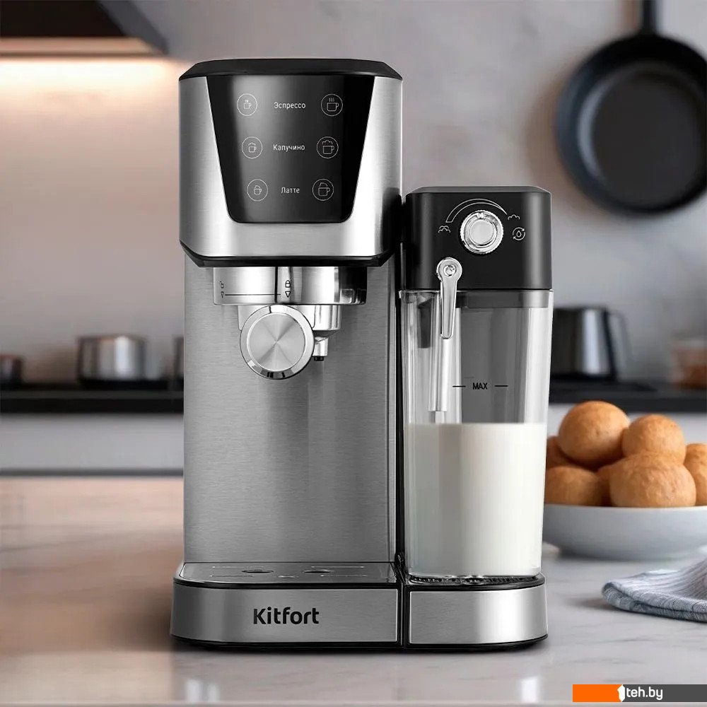 Фотографии, описание и технические характеристики модели кофеварки Kitfort KT-7552 взяты из открытых источников, официального сайта производителя или представительства Kitfort в Республике Беларусь.