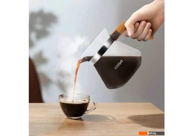 Фотографии, описание и технические характеристики модели кофеварки Kitfort KT-7574 взяты из открытых источников, официального сайта производителя или представительства Kitfort в Республике Беларусь.