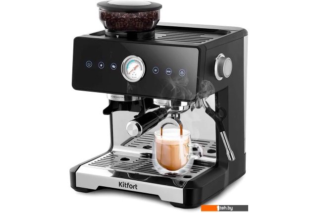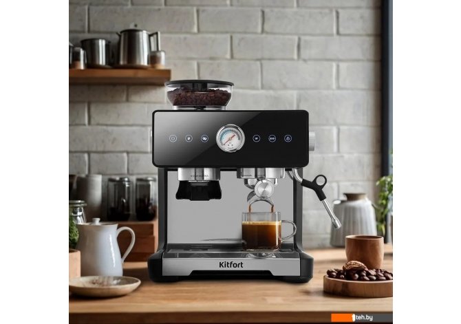 | Информация | - Сделаю ароматный чёрный кофе! Кофейная станция Kitfort KT-7577 объединяет в себе два устройства: кофемолку с коническими жерновами и кофейный аппарат. Это позволяет вам измельчать свежие кофейные зёрна прямо перед приготовлением, что значительно улучшает вкус вашего напитка. - Настраивайте под себя! Удобная панель управления с кнопками «Помол» и «Двойной помол» позволяет выбрать нужное количество кофе для помола. Кнопки «Эспрессо» и «Двойной эспрессо» активируют процесс приготовления, а манометр контролирует давление в бойлере для идеального результата. - Встроенная кофемолка обеспечивает равномерный помол, что особенно важно для приготовления вкусного эспрессо. Благодаря коническим жерновам, зёрна не перегреваются, что сохраняет их аромат и полезные свойства. - Приготовьте эспрессо, капучино или латте! Эта кофейная станция позволяет создавать разнообразные кофейные напитки, сохраняя все тонкости и ароматы. Специальная технология приготовления помогает сохранить полезные вещества в кофе. - Сделаю молочную пенку! Капучинатор с функцией стима позволяет легко взбивать молочную пенку. Просто погрузите его в холодное молоко, включите подачу пара и наслаждайтесь результатом. Регулятор «Горячая вода/пар» управляет подачей пара. - Удобно заливать воду благодаря съёмному резервуару ёмкостью 2,6 л. Его легко снять для наполнения или можно открыть крышку, не вынимая из кофейной станции. - Платформа с подогревом позволяет согревать чашки и рожок, используя тепло от бойлера. Это удобно как перед приготовлением, так и после мытья. - Мерная ложка в комплекте поможет точно отмерить нужное количество молотого кофе и утрамбовать его в фильтре. Фильтр устанавливается плотно в рожок для надёжной фиксации. - Удобное хранение аксессуаров предусмотрено в кофейной станции: контейнер для щёток, игл и фильтров. Игла поможет очистить насадку стимера, а щётка – жернова кофемолки. Отвёртка упростит извлечение фильтра из рожка. - Не упустите возможность насладиться качественным кофе с Kitfort KT-7577! |